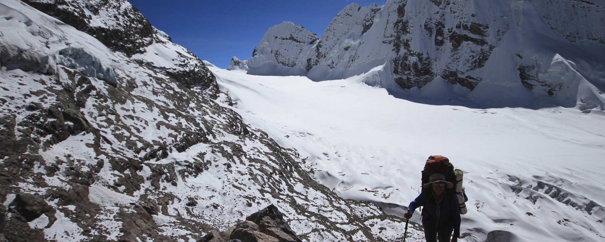 From Huaraz the expedition begins by heading north through the Callejon de Huaylas by vehicle, to Yungay 1 hour (2,500 m) then we take the road through the Llanganuco valley passing Orkon-cocha and Chinan-cocha lakes to Cebollapampa (3,950 m) where we make contact with our guides, porters, cooks and other staff to begin the walk towards base camp (4,700 m.) 4h
